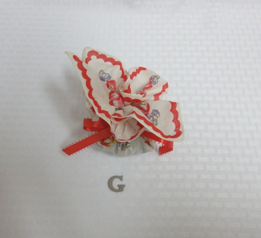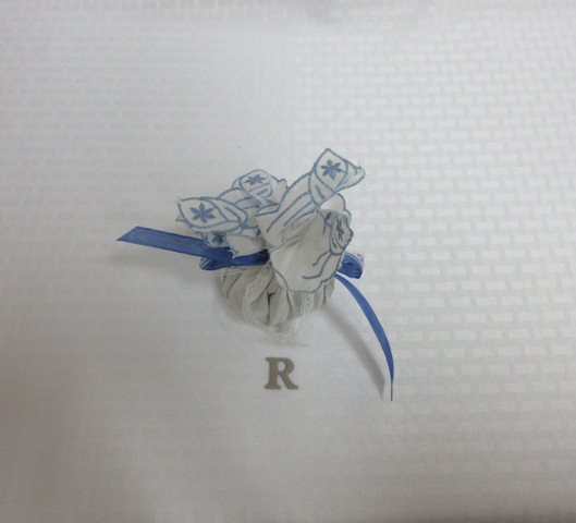 Each handkerchief has a unique size, pattern and is tied with two ribbons.